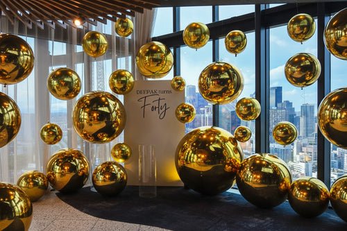 Ballons géants numéros & lettres dorées.